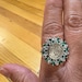 Double Halo Sparkle: Alternating green and clear stones symbolize growth, success, and clarity.
